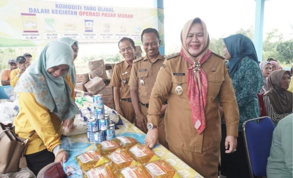 Guna memastikan kebutuhan pokok masyarakat terpenuhi dengan baik, Wakil Bupati Muara Enim, Ir. Hj. Sumarni, M.Si., @marni222_ melalui Dinas Ketahanan Pangan berkolaborasi dengan beberapa perangkat daerah terkait menyelenggarakan Operasi Pasar Murah (OPM) dan Gerakan Pangan Murah (GPM) di Desa Menanti Kecamatan Kelekar, Selasa (08/0725).