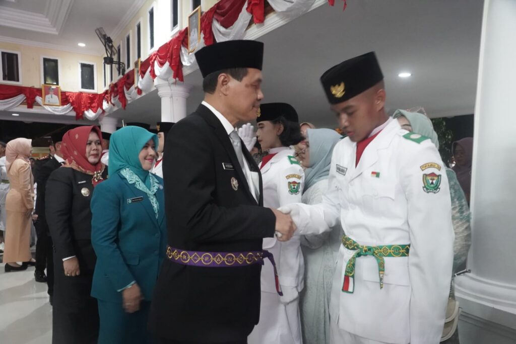 Muara Enim – Menjelang upacara peringatan Hari Ulang Tahun (HUT) ke-80 Republik Indonesia Tahun 2025, Bupati Muara Enim, H. Edison, S.H., M.Hum., mengukuhkan 50 Anggota Pasukan Pengibar Bendera Pusaka (Paskibraka) Kabupaten Muara Enim di Balai Agung Serasan Sekundang (BASSL Muara Enim, Jumat (15/08/25).