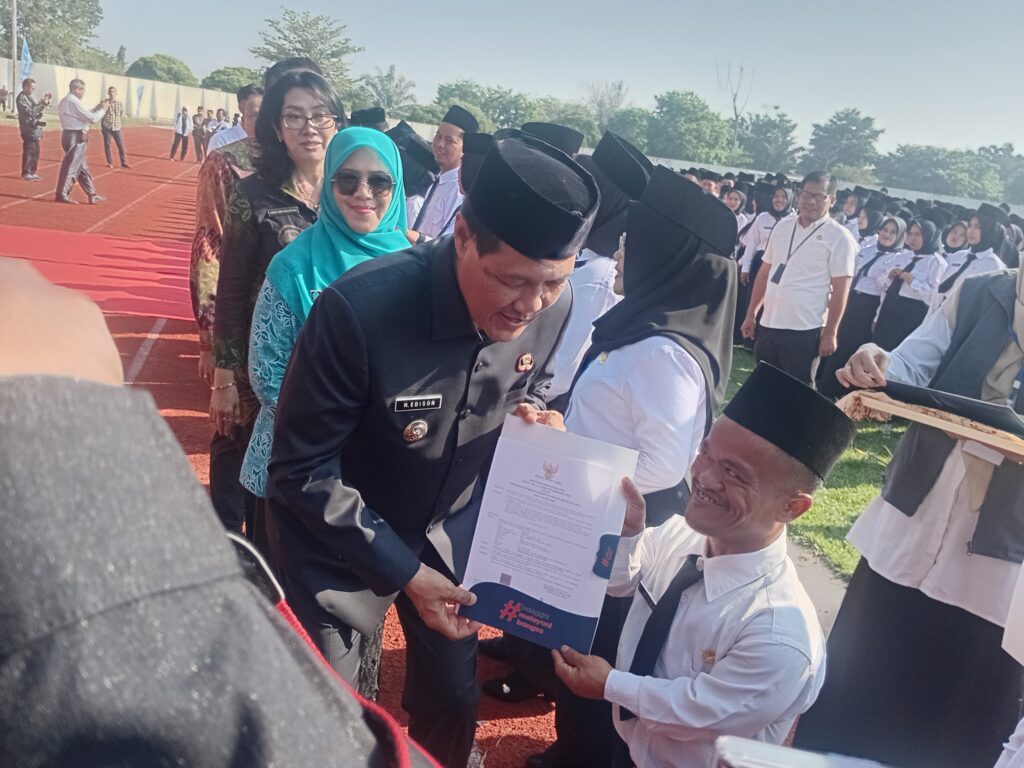 Muara Enim – Sebanyak 4.991 Pegawai Pemerintah dengan Perjanjian Kerja (PPPK) Pemkab. Muara Enim tahun formasi 2024 diresmikan Bupati Muara Enim, H. Edison, S.H., M.Hum., di Stadion Sekundang Bara, Muara Enim, Rabu pagi (27/08/25).