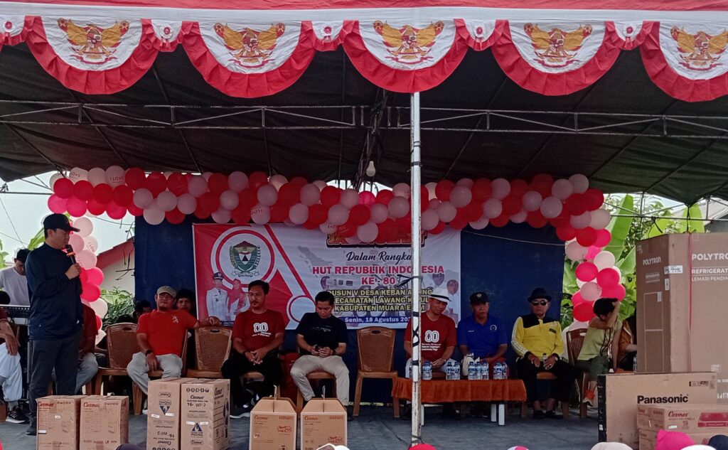 Acara dimulai dengan menyanyikan lagu Kebangsaan Indonesia Raya dan lagu hari merdeka dilanjutkan dengan undian puluhan door prize yang disediakan panitia HUTR Ke – 80 tahun 2025 Desa Keban Agung.