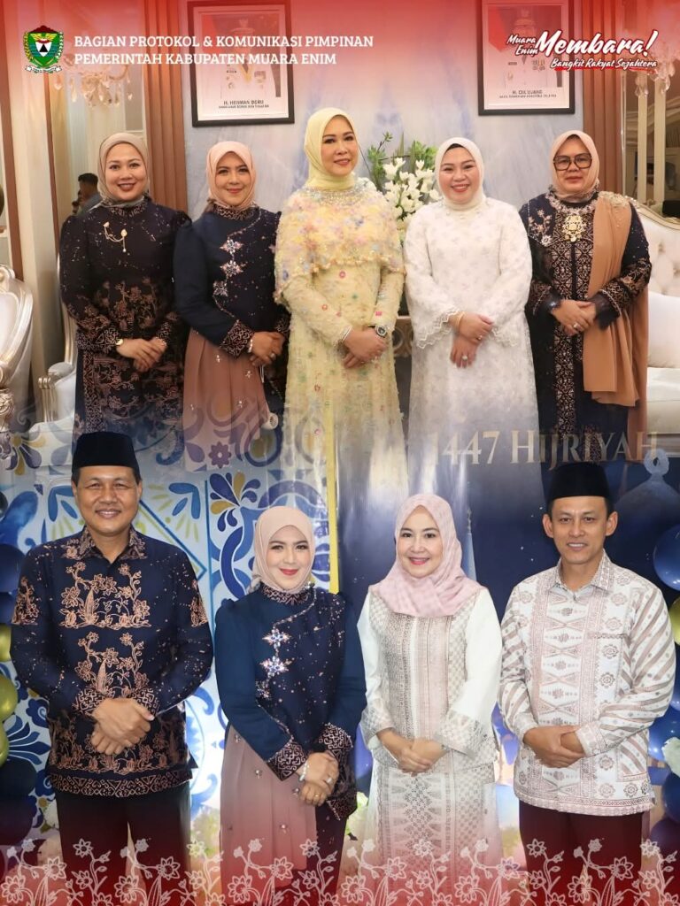 Palembang – Bupati Muara Enim H. Edison, S.H., M.Hum., bersama Wakil Bupati Ir. Hj. Sumarni, M.Si., menghadiri open house halal bi halal yang digelar Gubernur Sumatera Selatan H. Herman Deru di Griya Agung Palembang, Minggu (22/03/26).