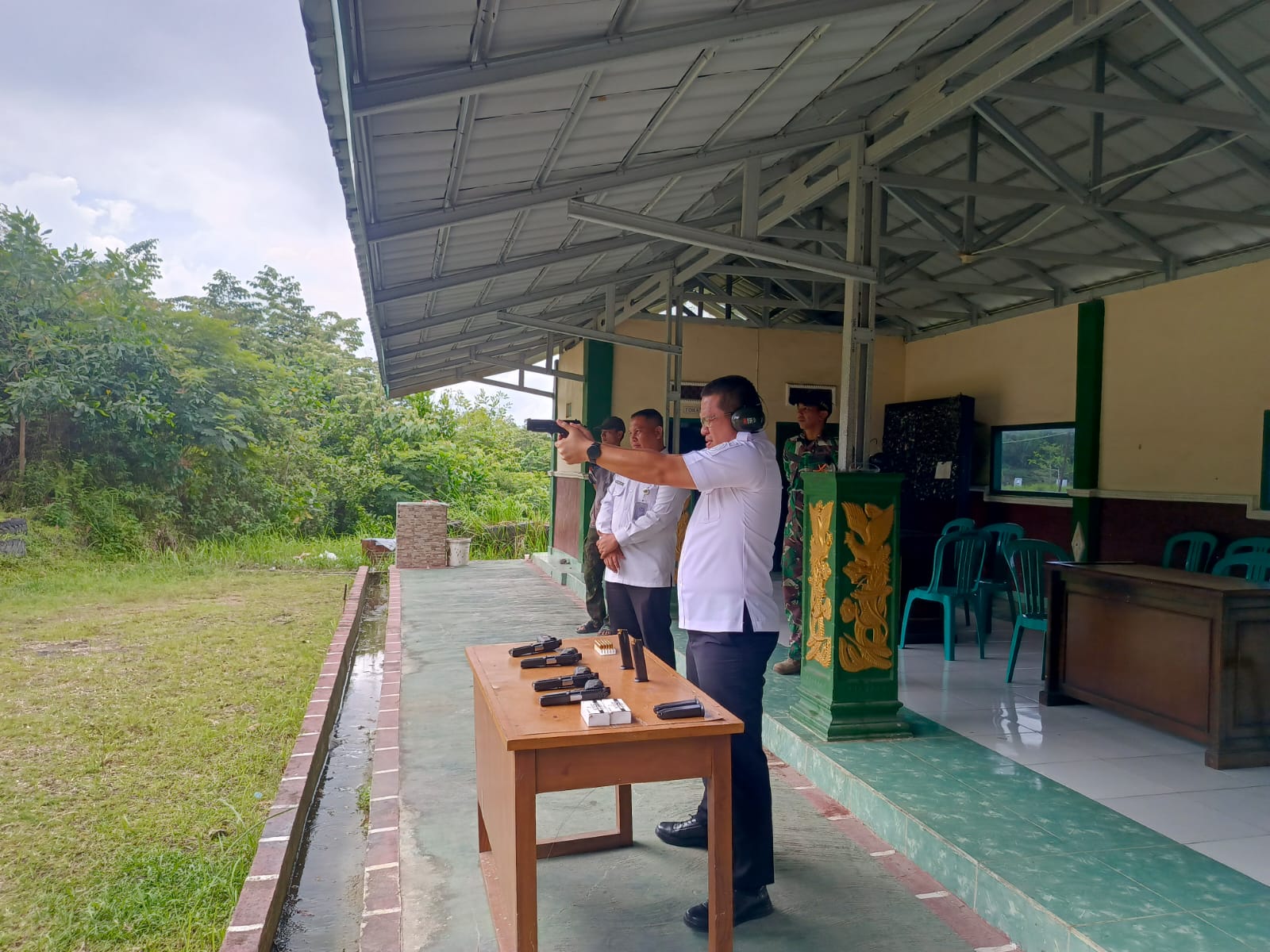 Kalapas Muara Enim dan Danyon Inf 141 Muara Enim beserta jajaran. Latihan menembak ini bertujuan untuk meningkatkan keterampilan, ketangkasan, serta profesionalisme aparatur dalam penggunaan senjata api, sekaligus mempererat soliditas dan kebersamaan antara Lapas Muara Enim dan TNI.