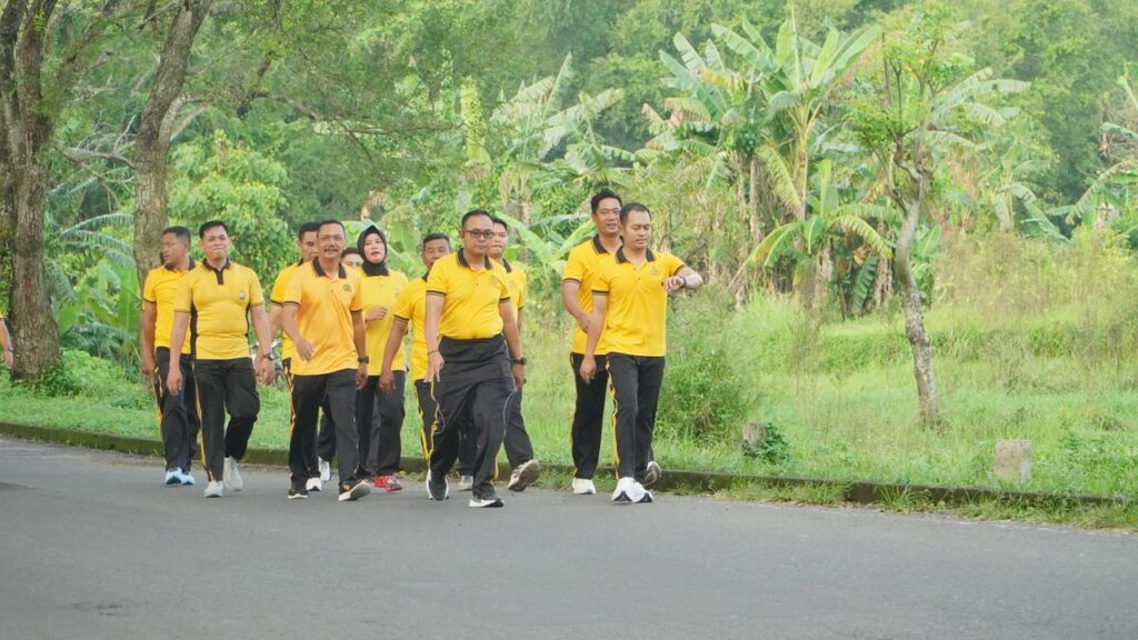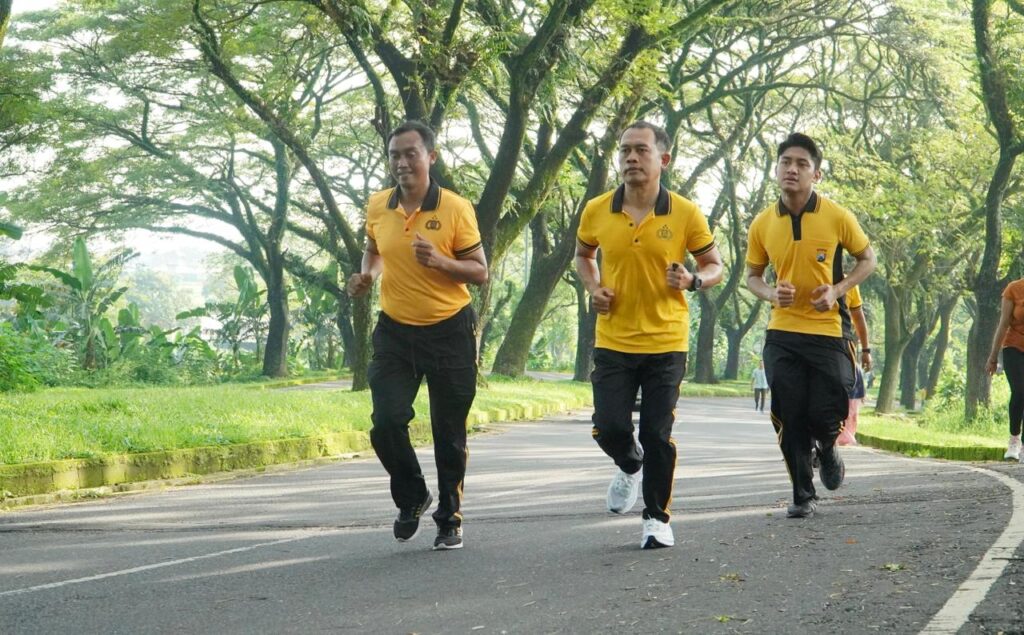 PASURUAN — Kapolres Pasuruan AKBP Harto Agung Cahyono mengajak seluruh personel mengikuti kegiatan olahraga bersama di kawasan Taman Dayu, Kecamatan Pandaan, Kabupaten Pasuruan, Jumat (10/4/2026).