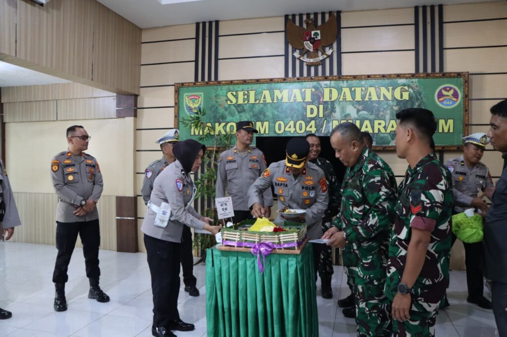 Muara Enim – Suasana penuh keakraban dan kehangatan tampak mewarnai peringatan Hari Ulang Tahun (HUT) ke-80 Tentara Nasional Indonesia (TNI) di Kabupaten Muara Enim. Polres Muara Enim memberikan kejutan (surprise) istimewa kepada jajaran TNI sebagai bentuk sinergitas dan soliditas antara dua institusi penjaga keamanan negara, Minggu (05/10/25).