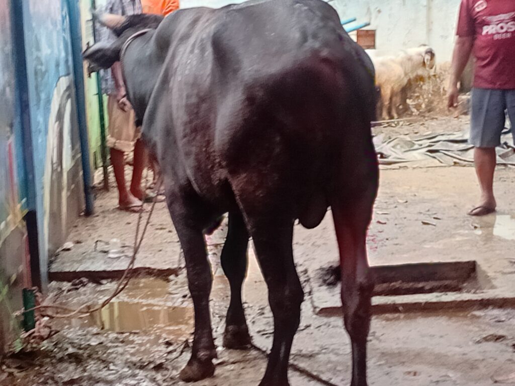 Usai melaksanakan sholat idul adha, didampingi suaminya Ir. Ahmad Yani, diiringi Kepala OPD dan tokoh agama serta pengurus masjid Agung meninjau seekor hewan qurban yang diberikan Bupati Myara Enim untuk dusembelih sebagai Qurban. (Mumar)