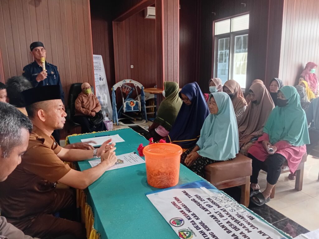 Muara Enim – Pemerintah Desa Keban Agung salurkan Bantuan Langsung Tunai (BLT) Rp. 1.800.000,- selama 6 bulan (Januari – Juni 2025) kepada Keluarga Penerima Manfaat (KPM) di Kantor Desa Keban Agung Kecamatan Lawang Kidul Kabupaten Muara Enim, Senin (16/06/25).