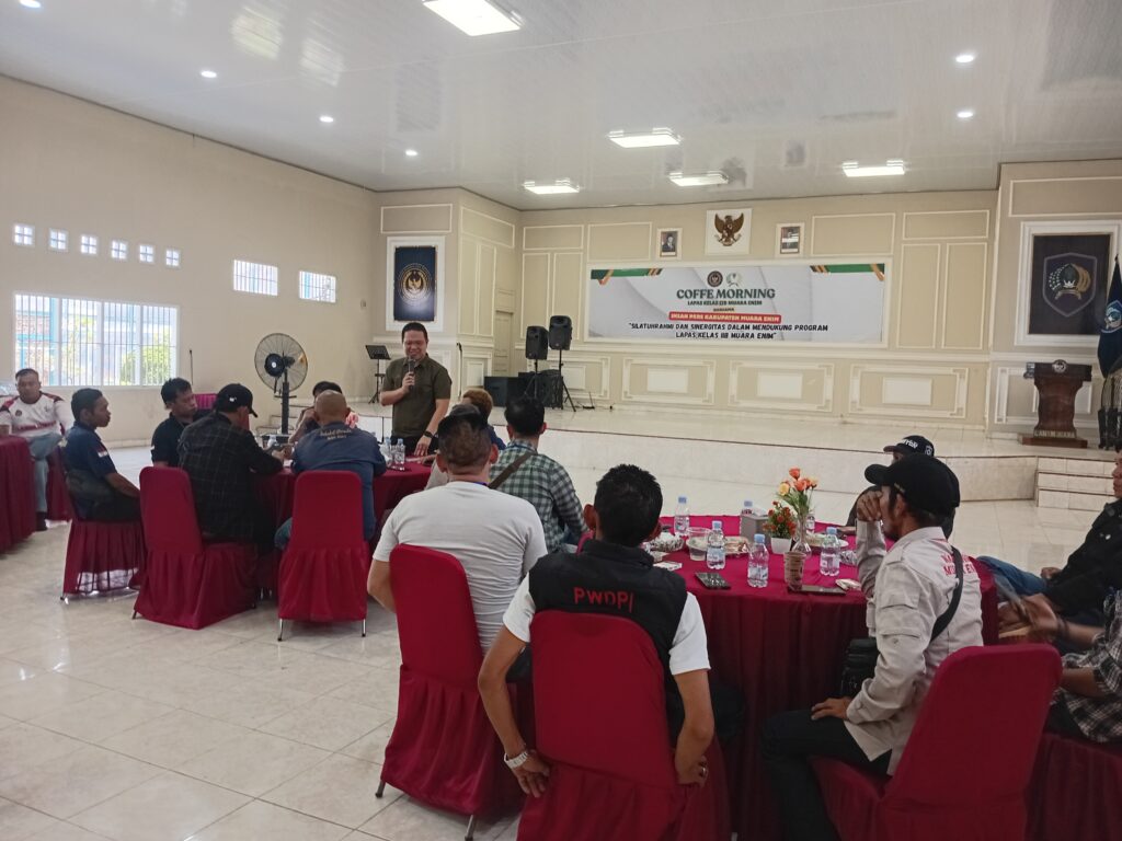 Muara Enim — Guna mempererat silaturahmi dan membangun sinergi positif antara lembaga pemasyarakatan dengan insan pers, Lapas Kelas IIB Muara Enim menggelar kegiatan Coffee Morning dengan tema “Silaturahmi dan Sinergitas dalam Mendukung Program Lapas Kelas IIB Muara Enim” di Aula Lapas Kelas IIB Muara Enim. Sabtu (18/10/25).