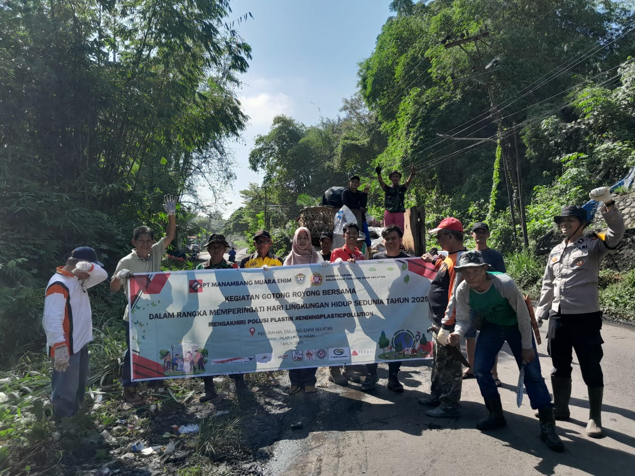 Muara Enim – Guna Mendukung terwujudnya lingkungan yang bersih, sehat, dan asri, pada peringatan hari lingkungan hidup sedunia, warga Kelurahan Tanjung Enim Selatan berkolabirasi dengan PT Manambang Muara Enim (PT MME) bersihkan sampah yang berserakan di sepanjang jalan raya Karang Asam, mulai dari perbatasan Desa Keban Agung sampai jembatan Catring Tania simpang Air Paku.