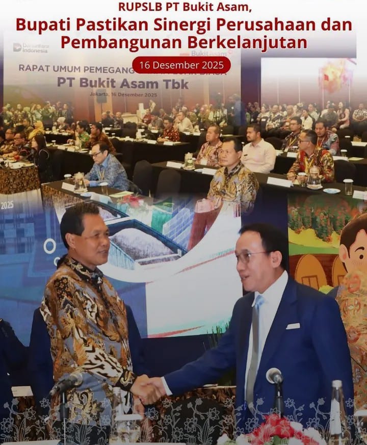Seputarnegeri.my.id – Bupati Muara Enim H. Edison, S.H., M.Hum., menghadiri Rapat Umum Pemegang Saham Luar Biasa (RUPSLB) PT Bukit Asam Tbk yang digelar di Hotel Borobudur Jakarta, Selasa (16/12/25).