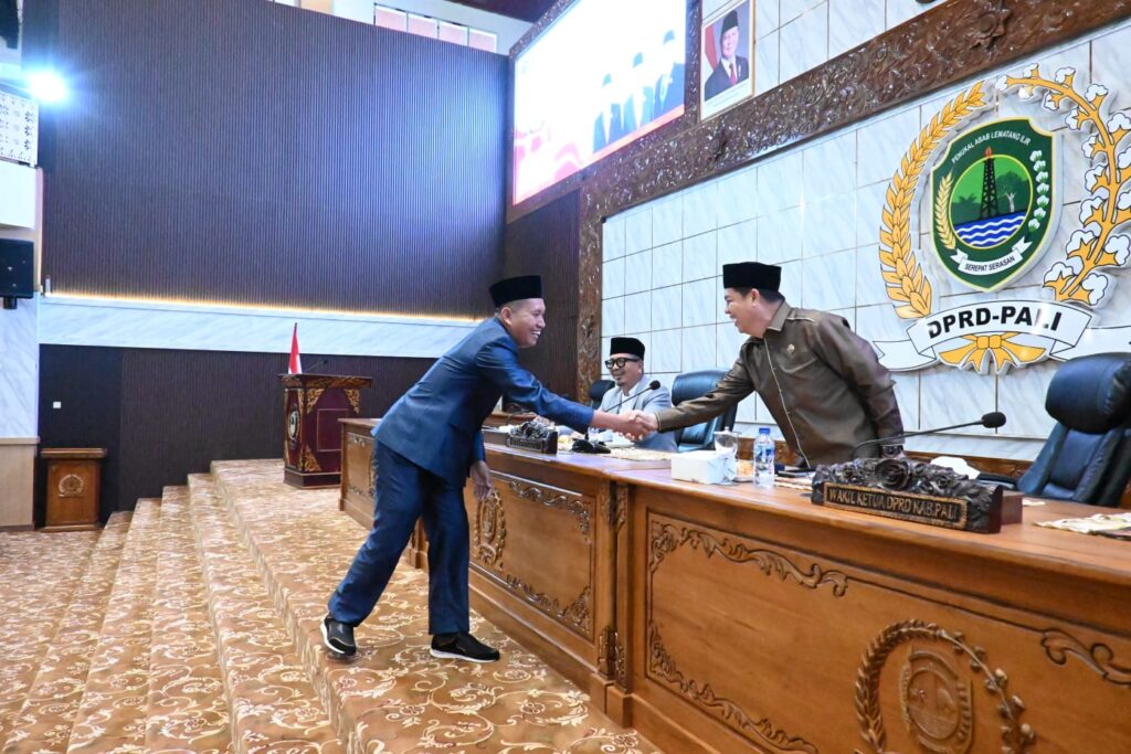 Rapat paripurna tersebut dihadiri oleh pimpinan dan anggota DPRD PALI.