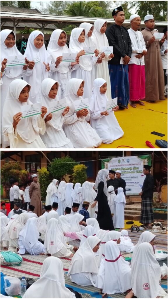 pesan Kepala Sekolah kepada para siswa dan siswinya. Beliau juga berharap agar melalui kegiatan ini, para siswa siswi dapat kembali menengok ke dalam hati dan tumbuh menjadi pribadi yang bermanfaat bagi bangsa dan agama.Aksi Nyata Melalui SantunanSebagai wujud implementasi dari nilai-nilai yang dipelajari selama Pesantren Kilat, SDN Batang-batang Daya II menyelenggarakan santunan bagi anak yatim.