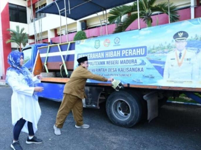 Dalam rangkaian kegiatan tersebut, turut dilakukan penyerahan sertifikat, bantuan peralatan, serta hibah perahu dari pihak politeknik sebagai bentuk dukungan terhadap pemberdayaan masyarakat.