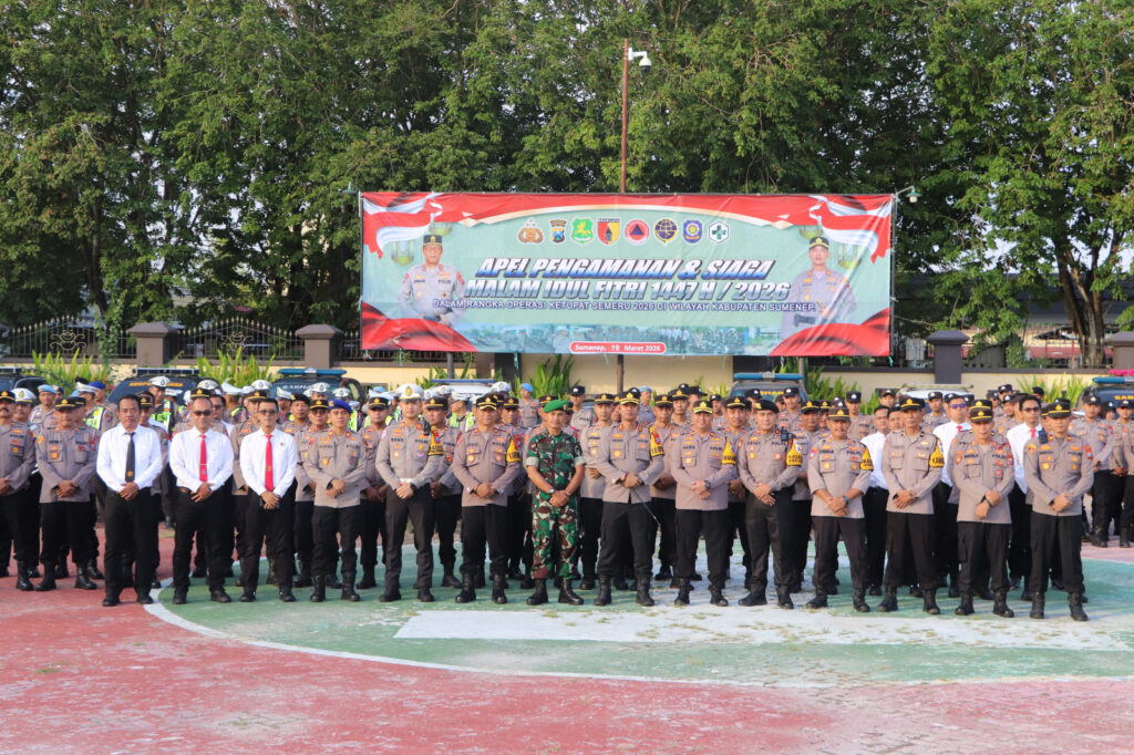 Sumenep – Dalam rangka menjamin keamanan dan ketertiban masyarakat menjelang perayaan malam Idul Fitri 1447 H / 2026, Polres Sumenep melaksanakan Apel Pengamanan dan Siaga yang digelar di Lapangan Tribrata Polres Sumenep pada Kamis (19/03/2026).